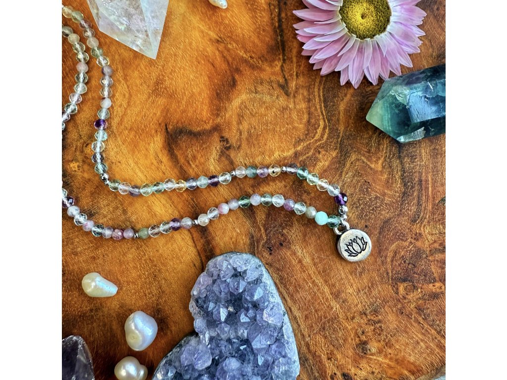 Kolekce Alchymistka - náhrdelník Lotosová cesta je vyrobený z kvalitní chirurgické oceli a fluoritu.