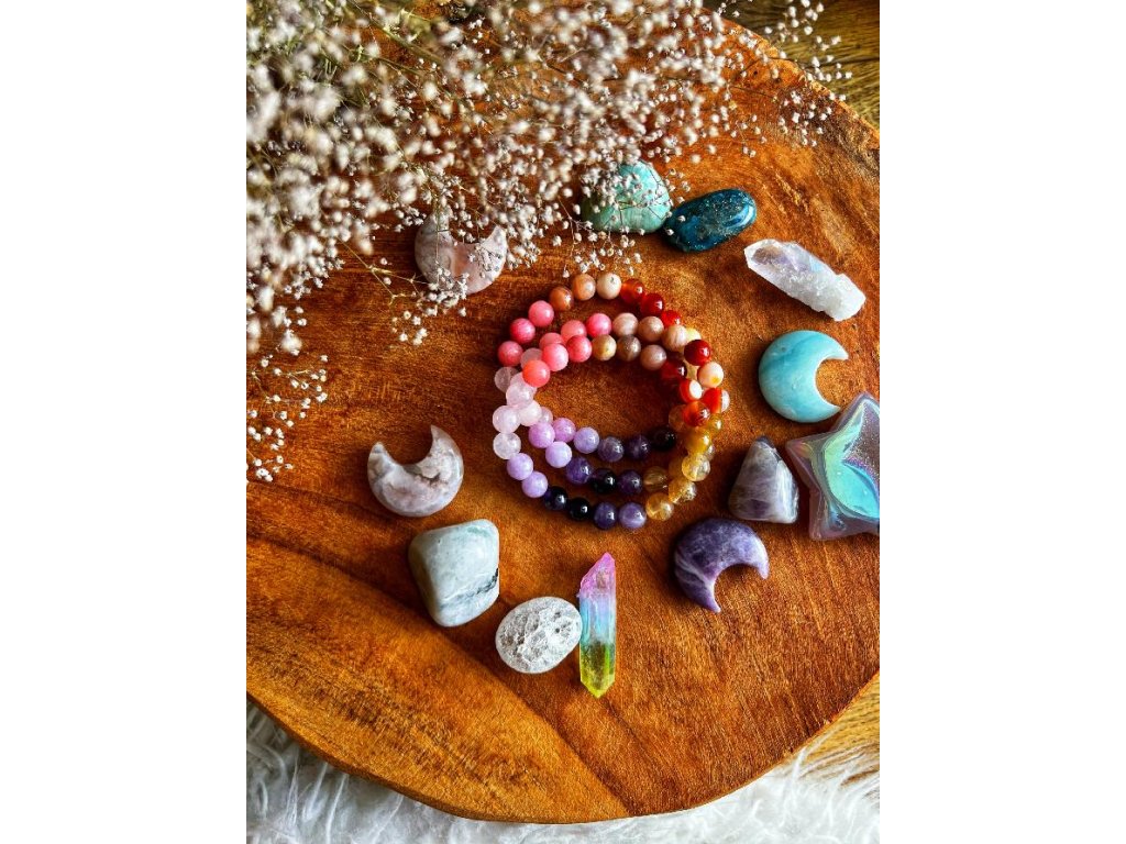 Materiál: Ametyst, Rodochrozit, Jadeit, Růženín, Sluneční kámen, Achát (barvený), Tygří oko (barvené) a Citrín
