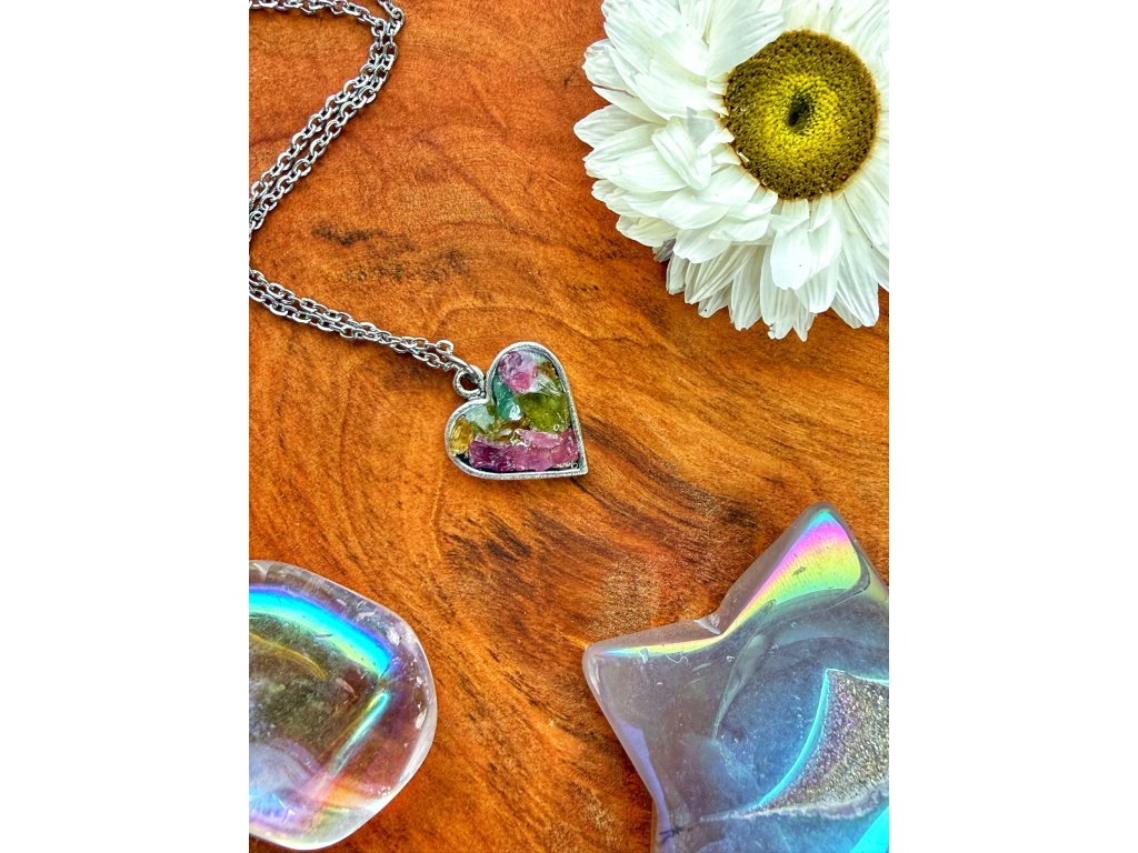 Lámané srdce - Turmalín z Mozambiku stříbrná