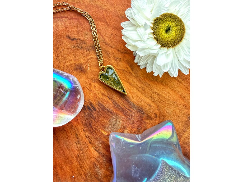Každý kousek v této kolekci je vytvořen z lámaného fragmentu vltavínu a zalitý v autorském přívěšku ve tvaru srdce jako součást kolekce Vesna - kolekce inspirované slovanskou bohyní jara a nových začátků. Každý šperk je originál, vzniklý z opravdového střípku přírody a vesmíru v jednom.